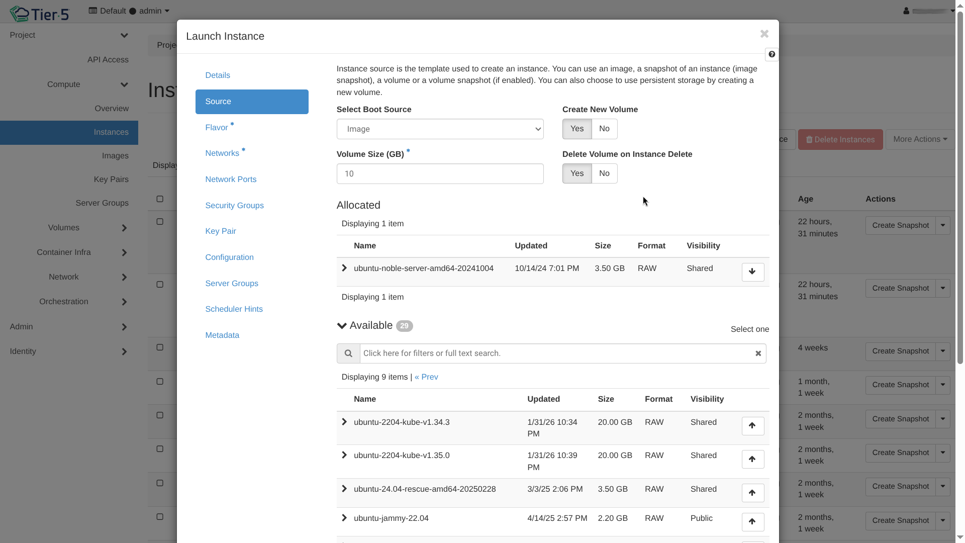 - Image: Boot from a pre-uploaded OS image (e.g., Ubuntu, CentOS).