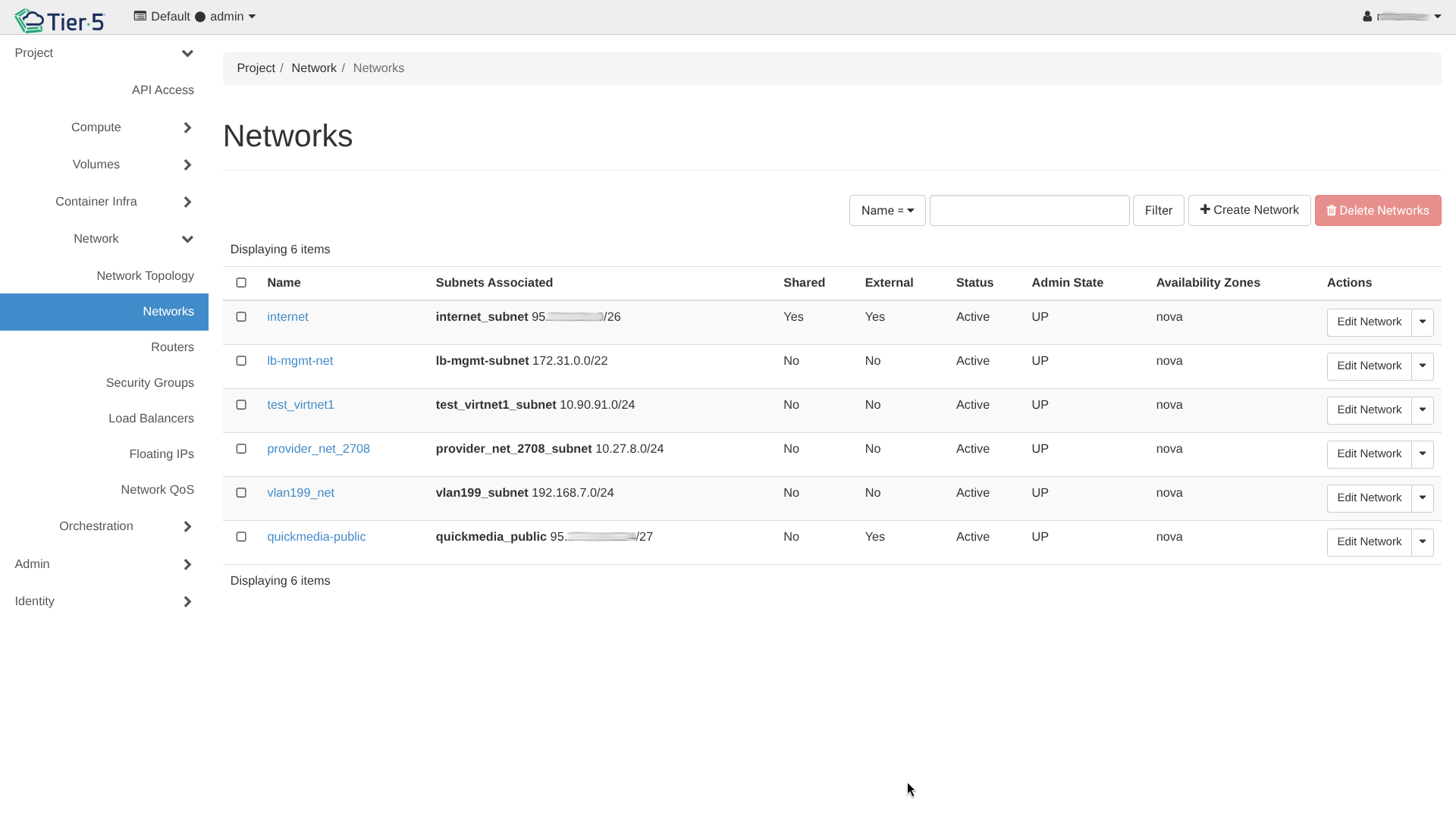 - This view shows all your running virtual machines, their internal/floating IPs, and power state.