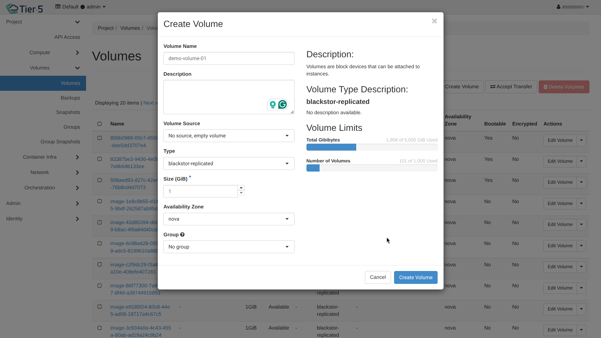 - Type: Select volume performance tier (e.g., HDD, SSD, NVMe).