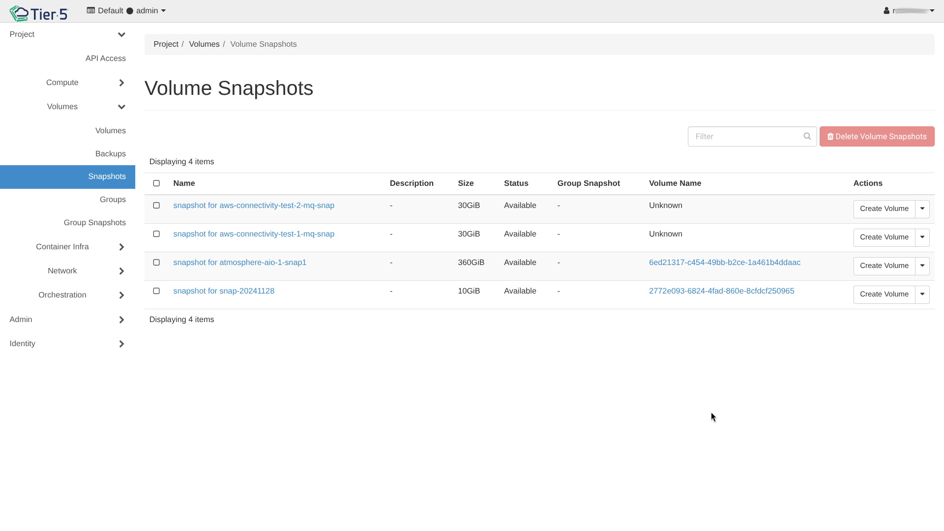 - Once created, use Manage Attachments to connect the volume to a running instance.