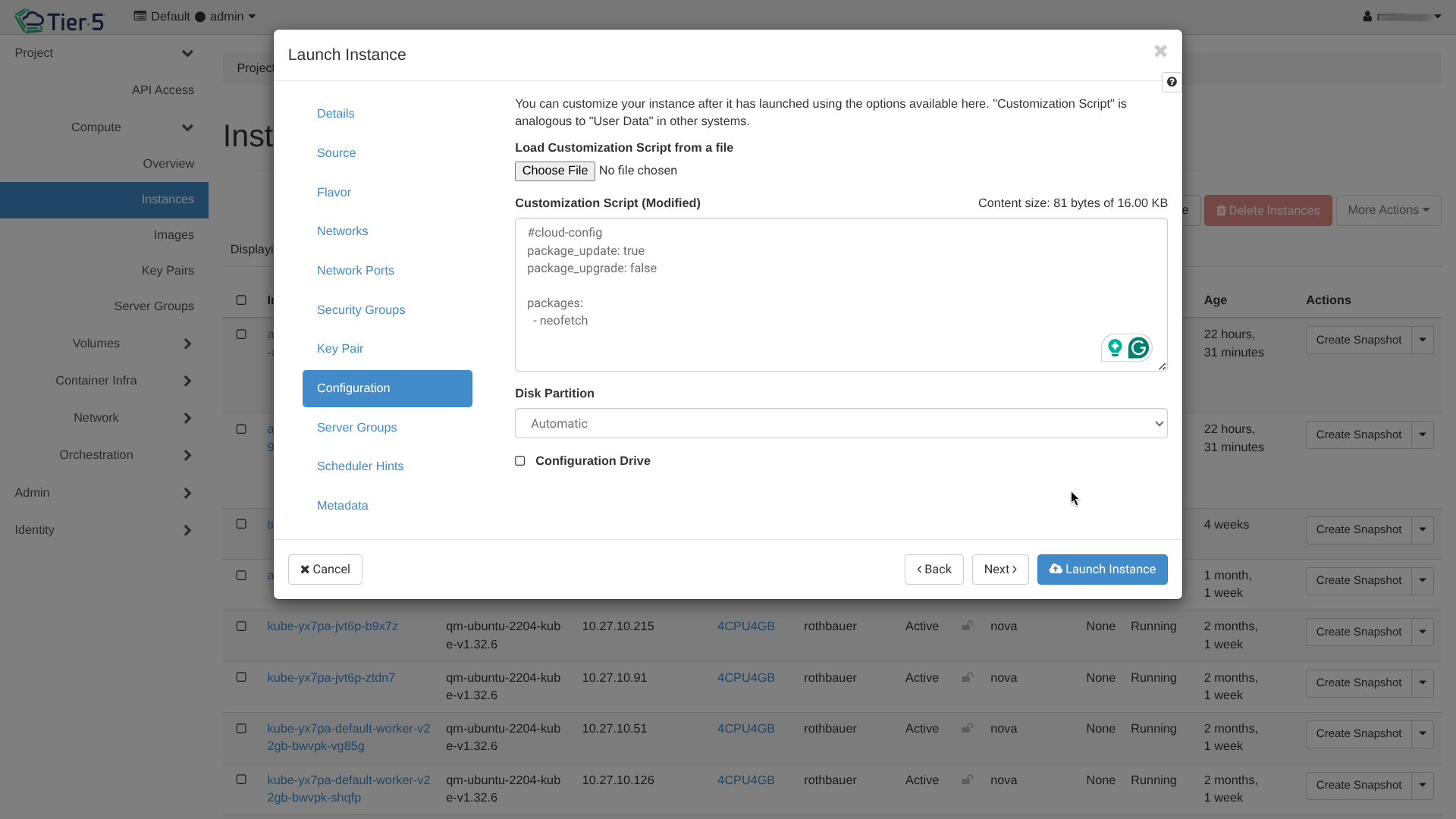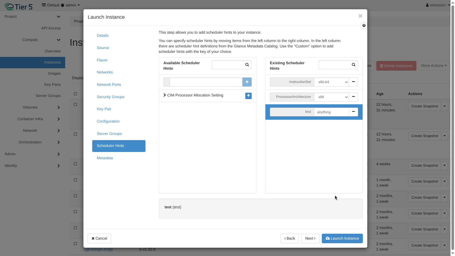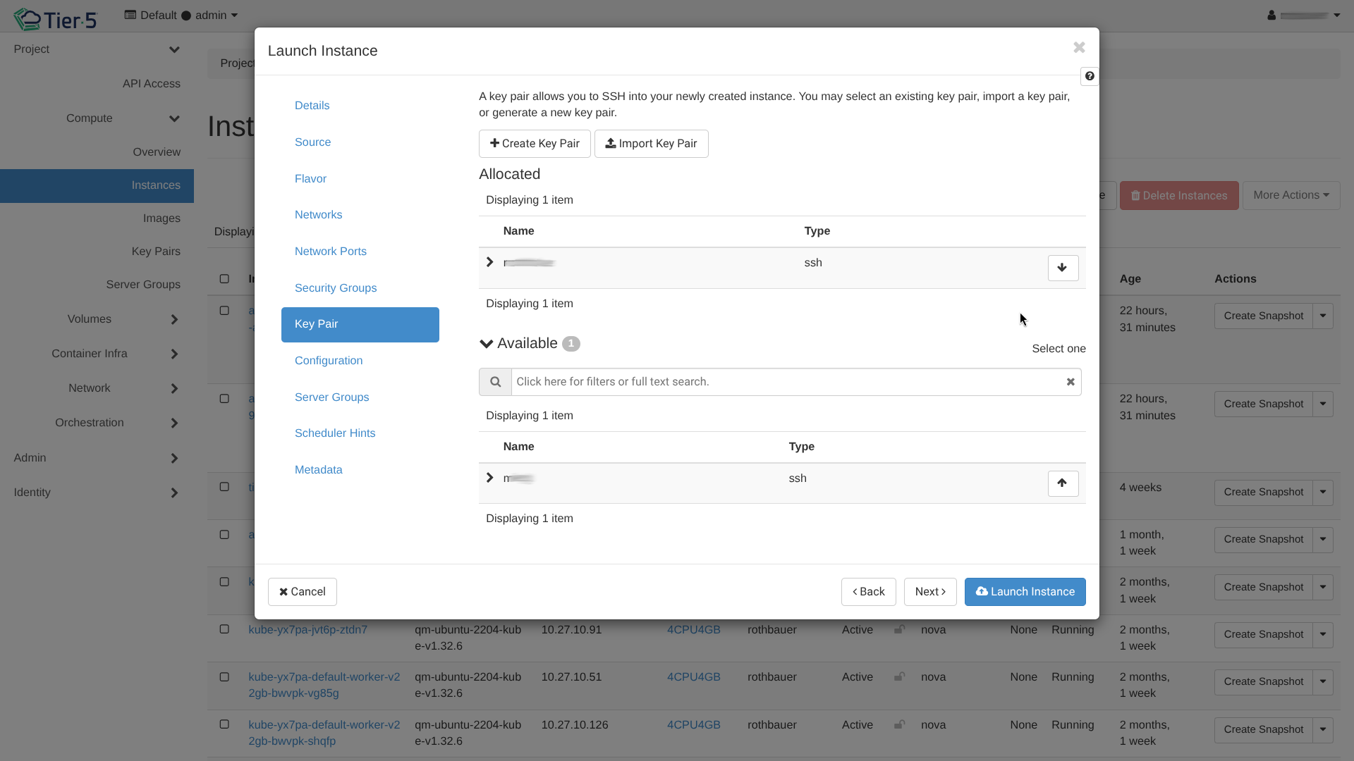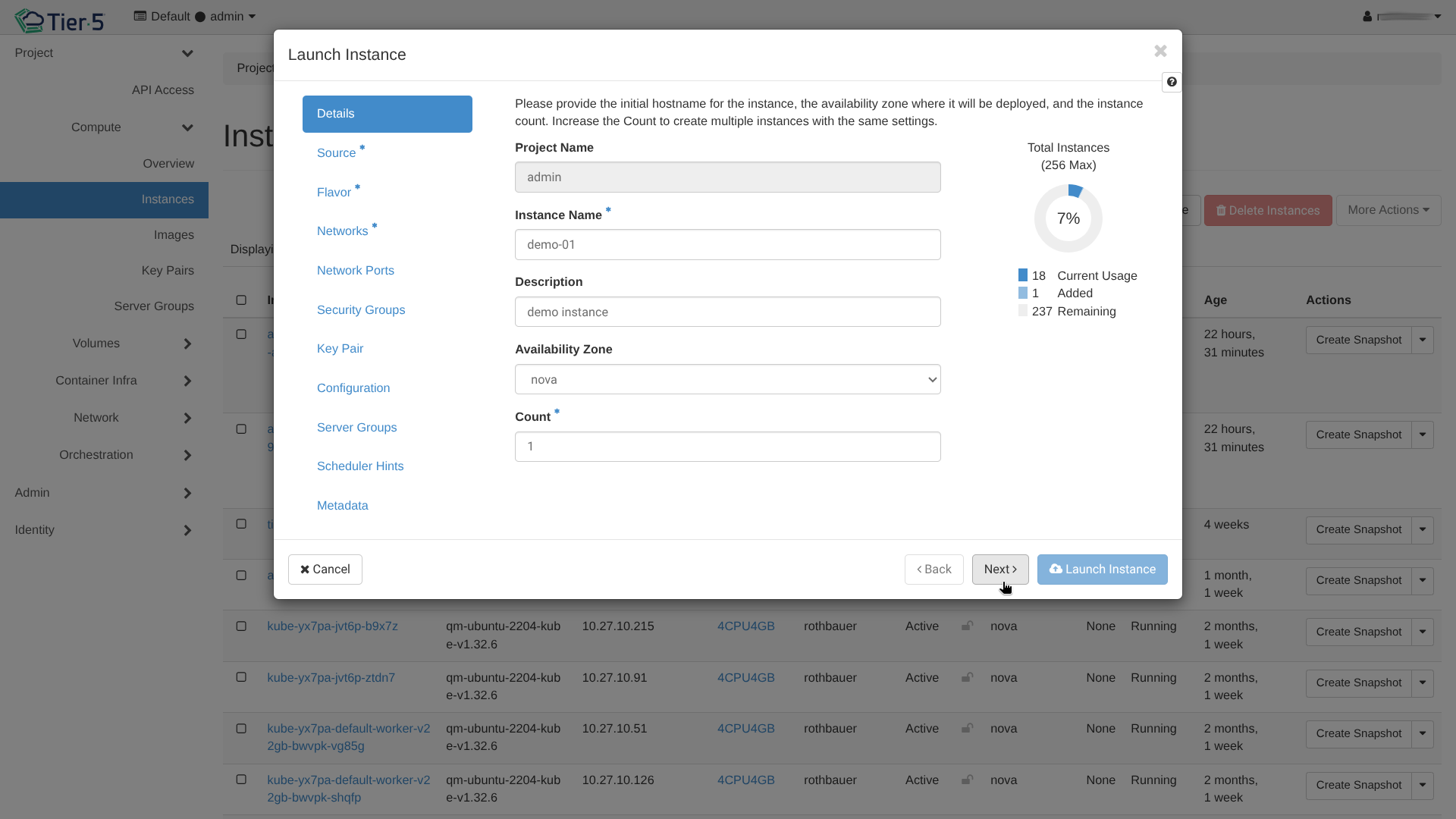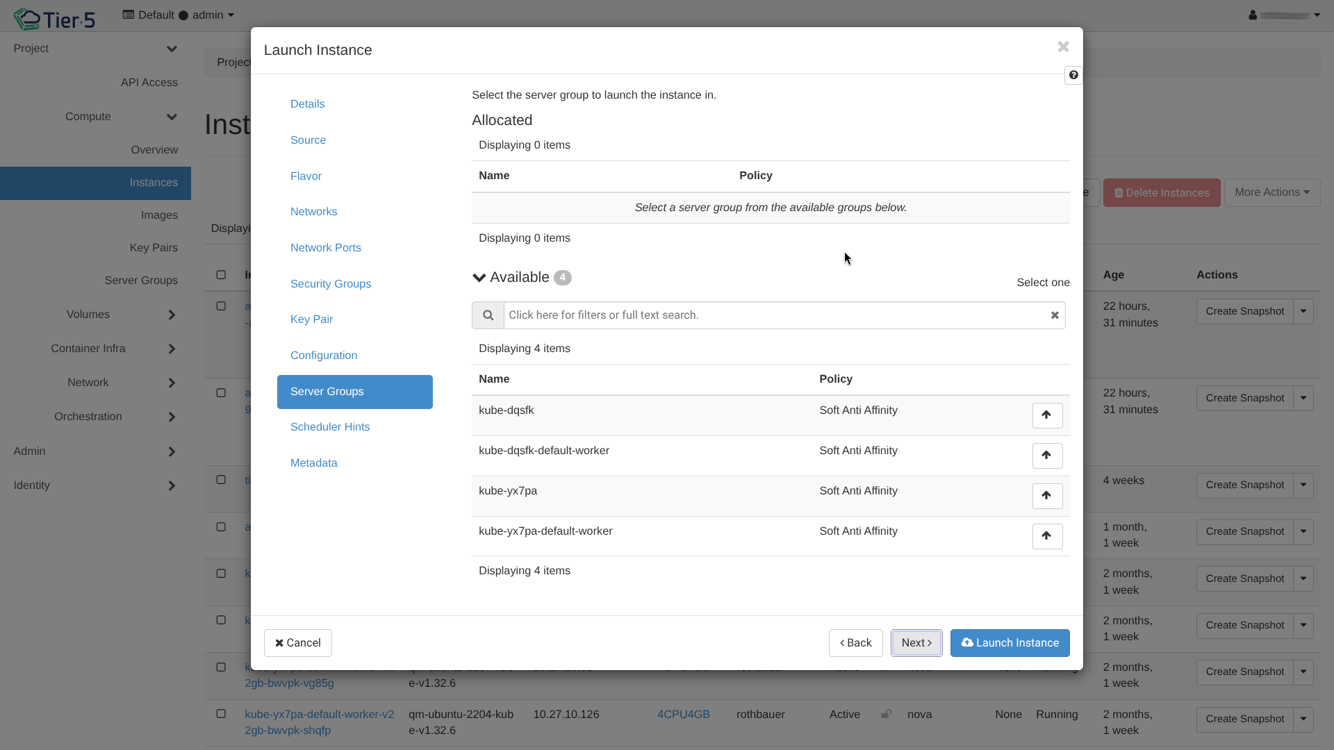- Server Group: Select a server group to apply affinity or anti-affinity policies (e.g., ensure instances run on different physical hosts).