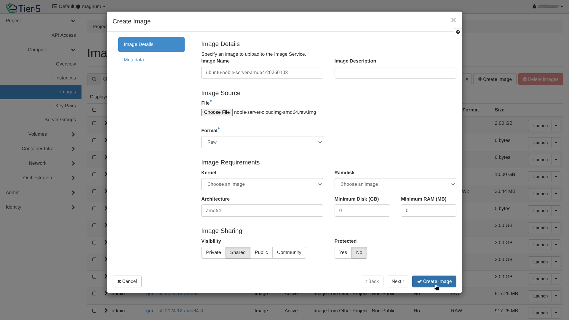 To upload a local image file (e.g., Ubuntu noble-server-cloudimg-amd64.raw):